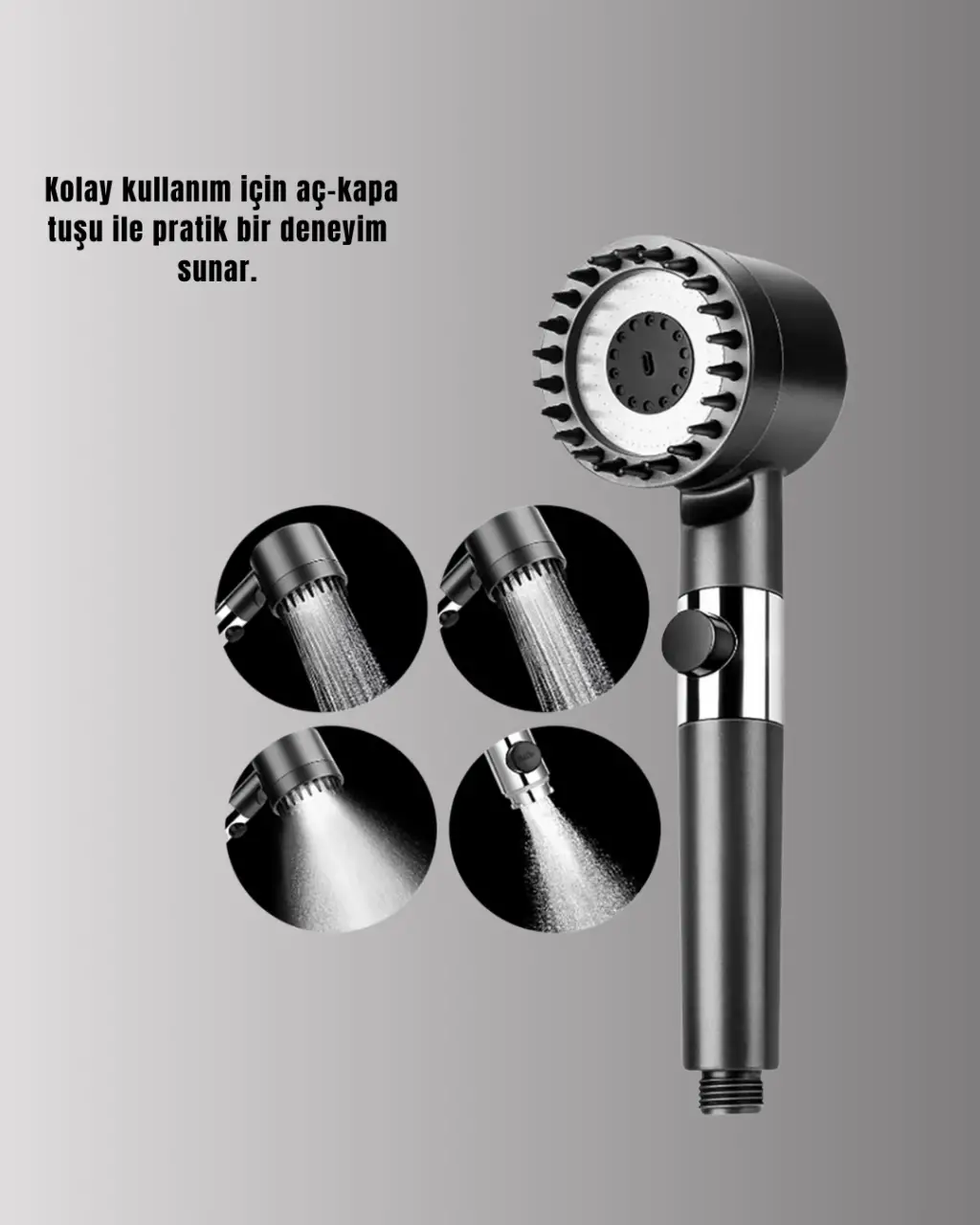 Filtreli masaj özellikli duş başlığı, banyo deneyimini daha konforlu, hijyenik ve keyifli hale getirmek için tasarlanmıştır. Aç kapa tuşu sayesinde su akışını tek hareketle kontrol etme imkânı sunar. Bu pratik özellik, duş sırasında suyu kapatmak ya da yeniden açmak için musluğa uzanma ihtiyacını ortadan kaldırır ve özellikle günlük kullanımda büyük kolaylık sağlar.Ürün, masaj fonksiyonu ile duş sırasında rahatlatıcı bir etki oluşturur. Özel su çıkış kanalları sayesinde suyu dengeli ve güçlü bir şekilde dağıtarak cilt üzerinde masaj hissi yaratır. Günün yorgunluğunu atmak, kasları gevşetmek ve daha ferah bir duş deneyimi yaşamak isteyenler için idealdir. Masaj etkisi, aynı zamanda suyun daha verimli kullanılmasına yardımcı olur.Filtreli yapısı sayesinde sudaki tortu, kireç ve istenmeyen partiküllerin büyük bir kısmının süzülmesine katkı sağlar. Bu özellik, özellikle sert suya sahip bölgelerde hem cilt hem de saç sağlığı açısından avantaj sunar. Filtreleme sistemi sayesinde su daha yumuşak hissedilir ve duş sonrası ferahlık hissi artar.Dayanıklı plastik materyalden üretilmiş olan duş başlığı, uzun süreli kullanım için uygundur. Neme ve suya karşı dirençli yapısı, deformasyon riskini azaltır. Aynı zamanda kolay temizlenebilir olması sayesinde hijyenik kullanım sunar. Düzenli temizlik ile ilk günkü görünümünü uzun süre korur.Yeni nesil tasarımı, banyonuza modern ve şık bir dokunuş kazandırır. Hem fonksiyonel hem de estetik yapısı ile her banyo dekorasyonuna uyum sağlar. Çok fonksiyonlu tasarımı sayesinde farklı kullanım ihtiyaçlarına cevap verir ve banyo rutininizi daha konforlu hale getirir.