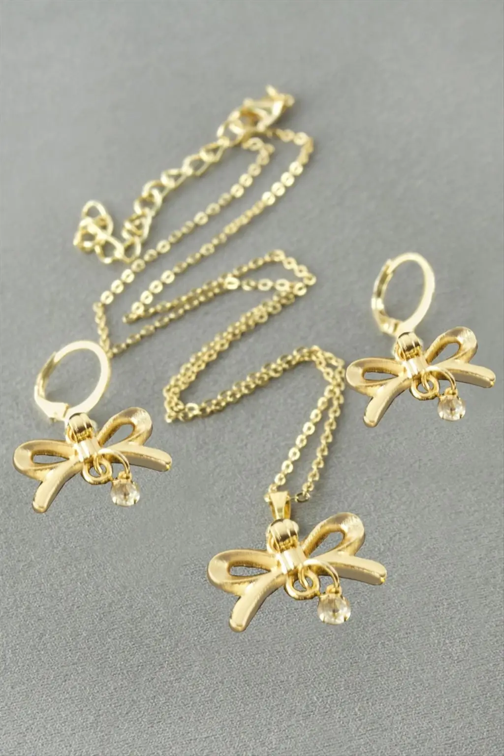 Kolye; Ürün malzemesi metaldir. Küpe boyu 3 cm ve kolye uzunluğu 45 cmdir. Kutusuyla beraber gönderilecektir. 1 kutu içersinde 1 çift küpe ve 1 adet kolye bulunmaktadır.