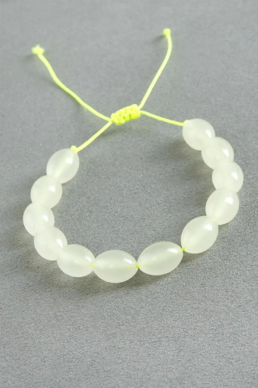 Bileklik; Ürün malzemesi boncuk ve makrome iptir. Ürün arkası asansörlüdür. Bileğe göre ayarlanabilir. Aparat boyu 1 cmdir. Kartlıdır.