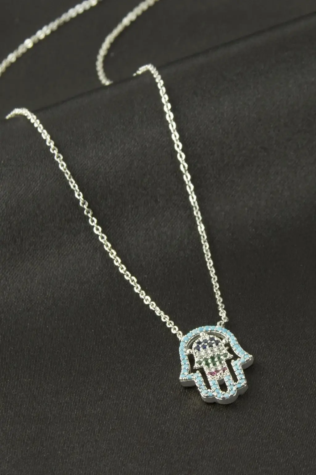Kolye; Ürün malzemesi metal ve zirkon taşlıdır. Ürün boyu 45 cmdir. Kartlıdır. 1 sınıf kaliteli malzemeden üretilmiştir. Ürün ucundaki aparat boyu 2 cmdir.