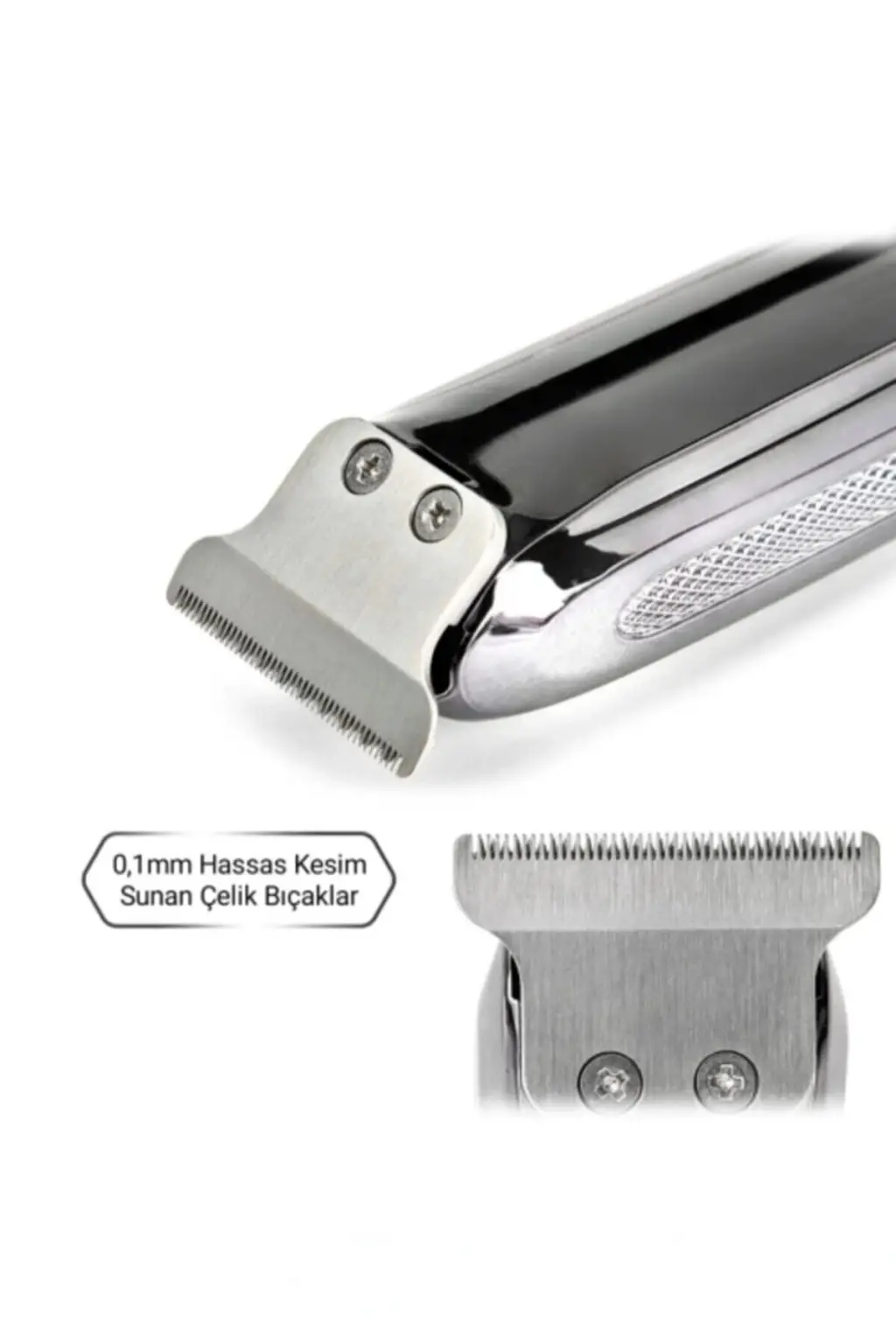 Özellikler: -saç ve sakal kesiminde mükemmel performans -gümüş "pd.Alloy" motor sayesinde en sık ve sert saç sakallarda bile Çekme yolma ve yığılma yapmaz -keskin çelik bıçakları dayanıklı ve uzun ömürlüdür -yüksek devir gücü ile sorunsuz tıraş -sessiz ve titreşimi optimize edilmiştir -taraksız kullanımda sıfıra yakın (0,1mm) kesim sağlar -ergonomik yapısı sayesinde kolay kavranır Kutu içeriği: 1 şarjlı tıraş makinesi Taraklar 1 1mm 1 2mm 1 3mm 1 şarj adaptörü 1 temizlik fırçası 1 bakım yağı Temizlik ve bakım Makinenin uzun ömürlü olması için bıçaklarını kullanım yoğunluğuna göre düzenli bir şekilde yağlayınız. Öncelikle her kullanımdan sonra kutu içerisinde bulunan temizlik fırçası ile makinenizin bıçaklarında ki saç-Sakal artıklarını temizleyiniz. Uzun süreli kullanımdan (1-2 ay) sonra detaylı temizlik için çelik bıçağın arkasındaki 2 vidayı sökünüz ve fırça ile temizliği tamamladıktan sonra uygun kısımları yağlayarak tekrar takınız. Makinenizi suya yada yağa yatırmayınız ve yıkamayınız. Kozmetik temizliği için nemli bez kullanınız. Temizlik aşamasında çözücü ve ovucu maddeleri kullanmayınız.