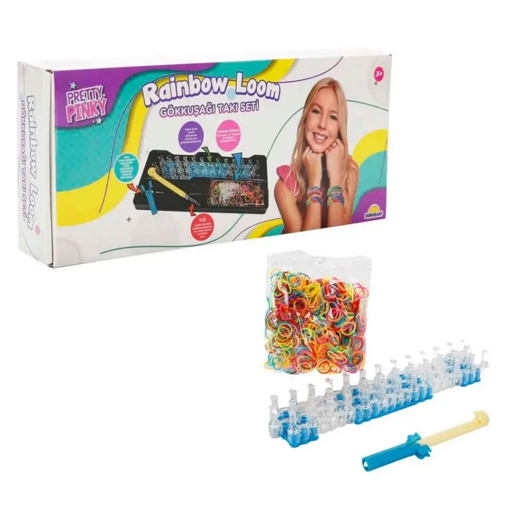 Bir kutunun i.ccedil;inde hem eğlence var hem de bolca yaratıcılık! Rengarenk lastikler, .ouml;rme aparatı ve tığ ile G.ouml;kkuşağı Takı