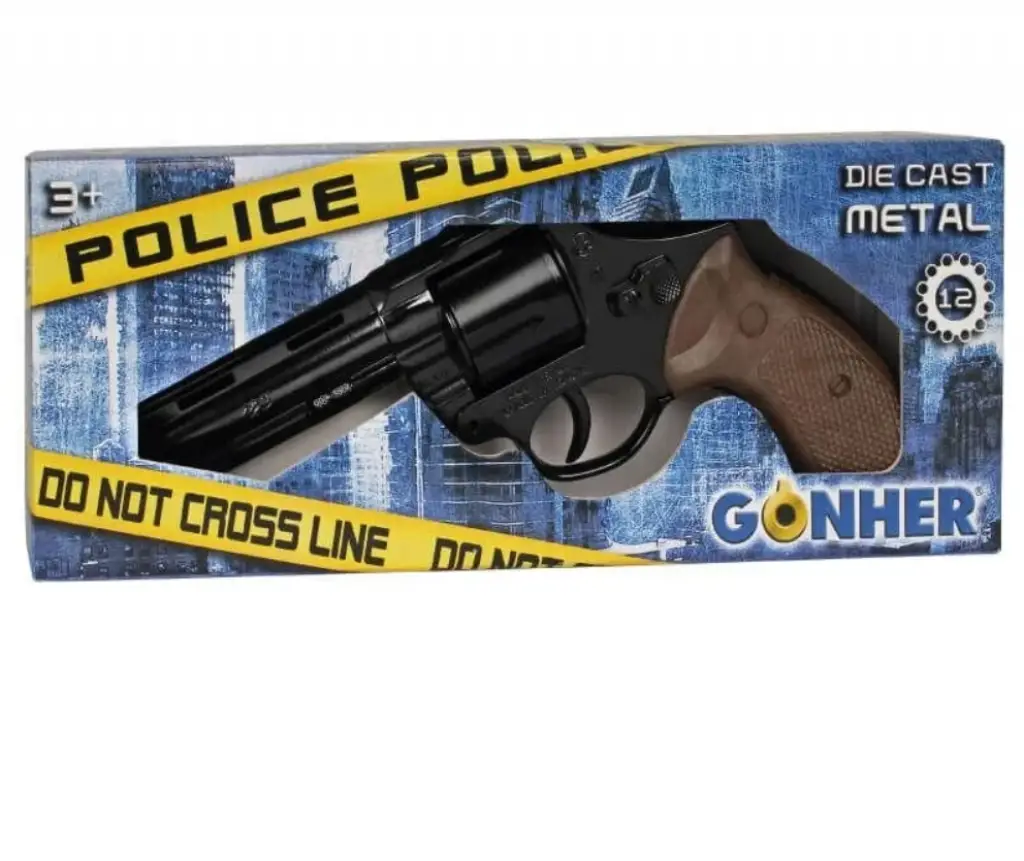 Gonher Revolver 12 li Siyah Mantar Koleksiyon Polis Tabancası