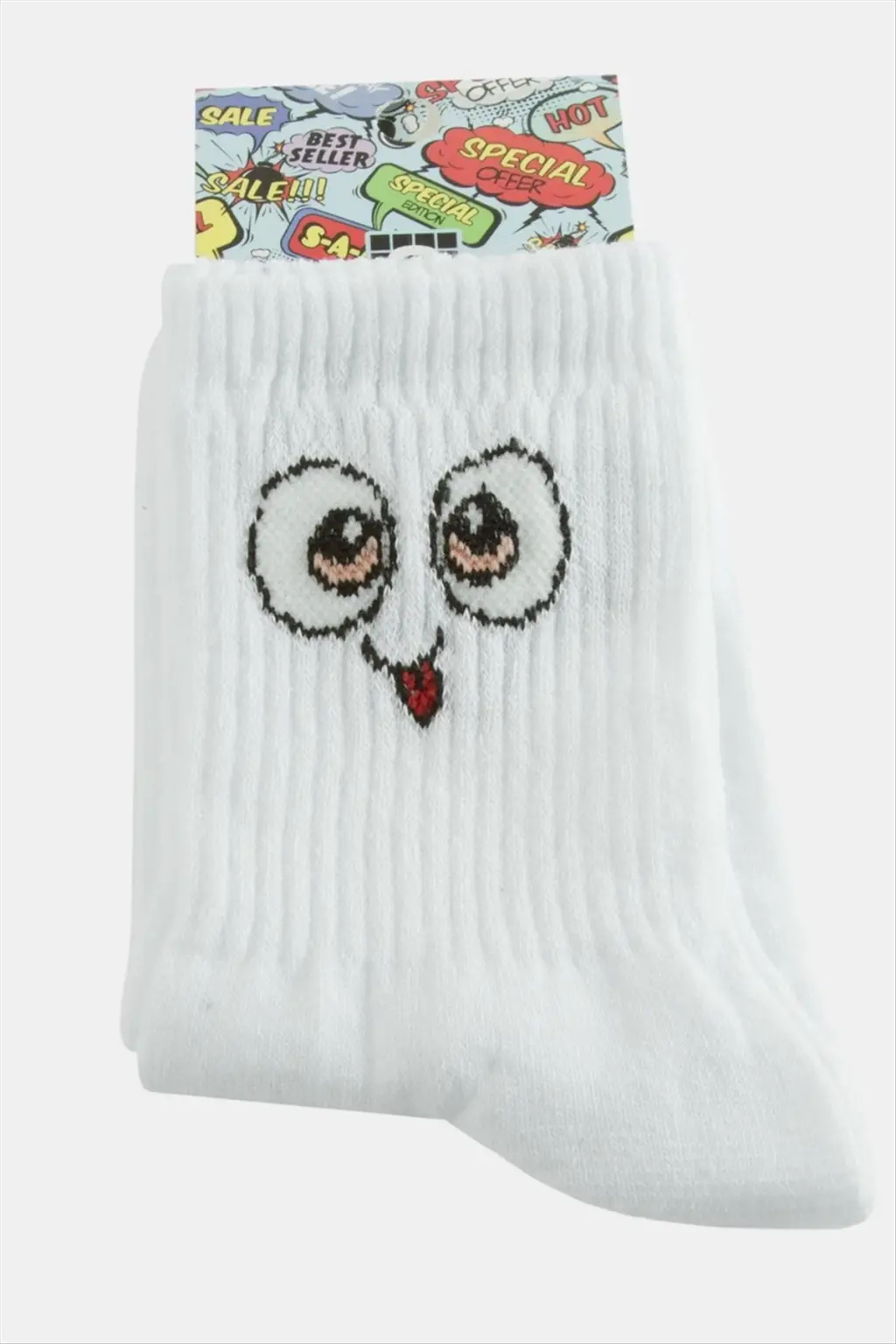 Çorap; Ürün malzemesi polyester ve üzeri desenlidir. Boyu 28 cm ve genişliği 8 cmdir. Ürün numarası 37-41 arasındadır.