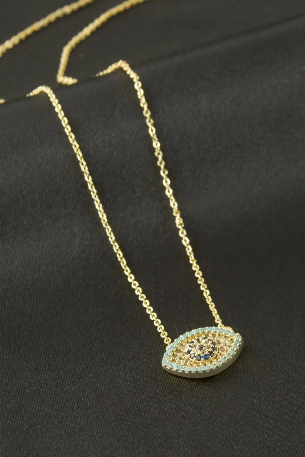 Kolye; Ürün malzemesi metal ve zirkon taşlıdır. Ürün boyu 45 cmdir. Kartlıdır. 1 sınıf kaliteli malzemeden üretilmiştir. Ürün ucundaki aparat boyu 1,5 cmdir.
