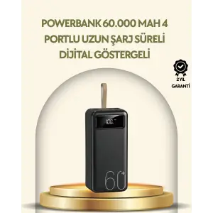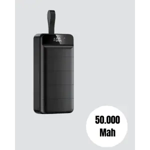 50.000 mAh Ultra Güçlü Powerbank 4 USB Çıkışlı, LED Dijital Göstergeli, Hızlı Şarj Destekli Taşınabilir Şarj Cihazı