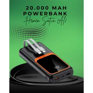 20000 mAh Powerbank | Çok Kablolu, Dijital Göstergeli, Yüksek Hızlı Şarj Cihazı