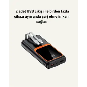 20000 mAh Taşınabilir Powerbank | Çok Kablolu, Hızlı Şarj Destekli (22.5W)