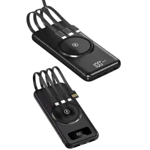 Kablosuz Çoklu Şarj Girişli 10.000 Mah Kablolu Powerbank Taşınabilir