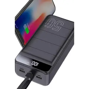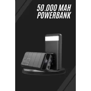 Taşınabilir Powerbank 50.000 mAh 4 Girişli Hızlı Şarj Led Göstergeli Fenerli Şarj