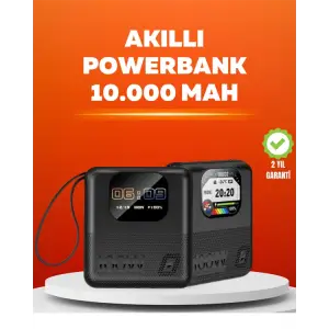 Akıllı Powerbank Ekranlı 10.000 Mah Hızlı Şarj Edebilen 4 Girişli Çok Fonksiyonlu