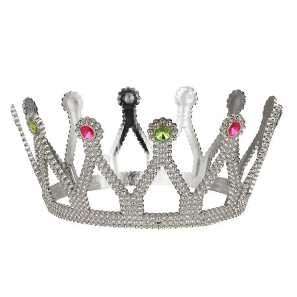 Gümüş Renk Çocuk Ve Yetişkin Uyumlu Kraliçe Tacı Prenses Tacı 8x25 Cm