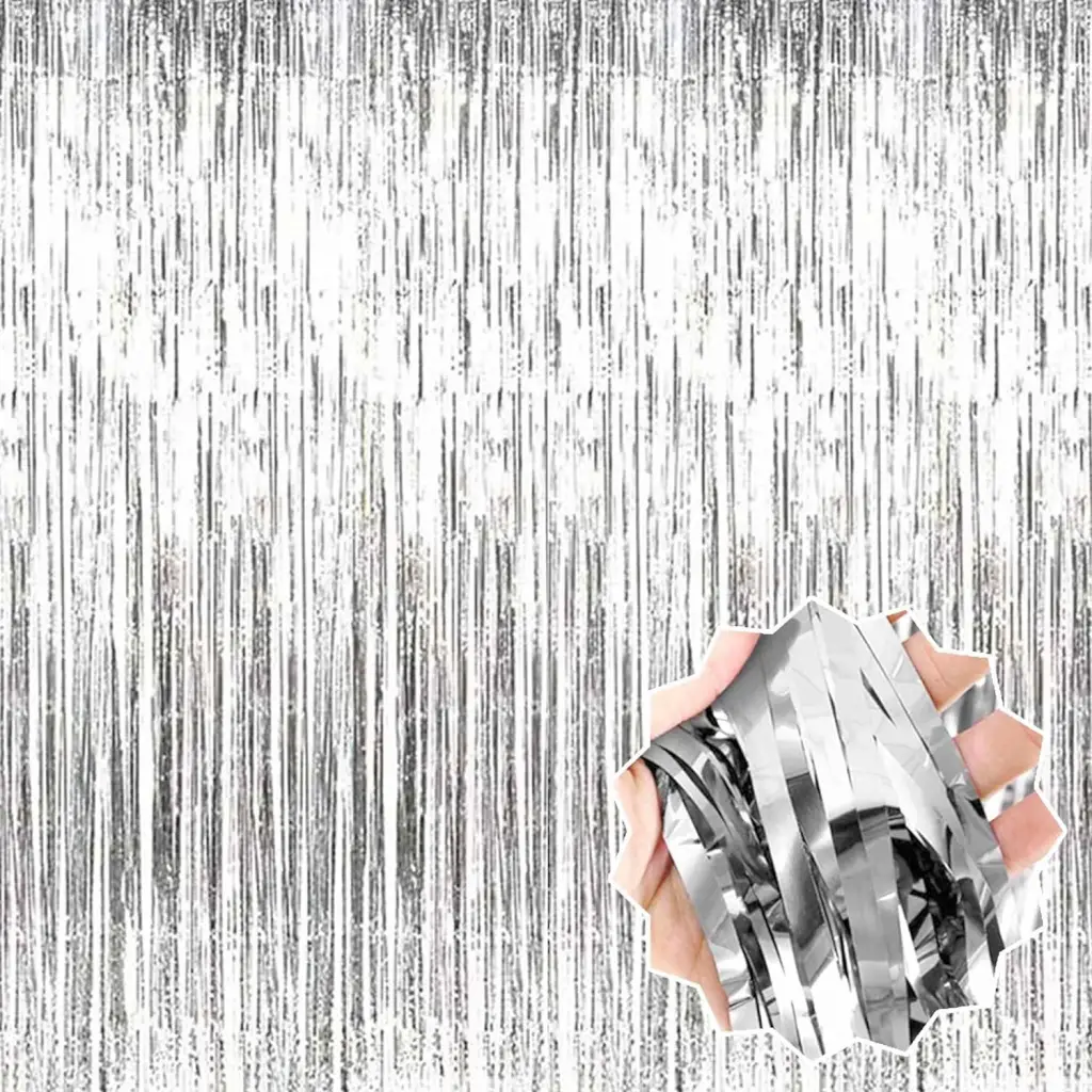 Gümüş renk ekstra metalize parlak saçaklı arka fon perdesi ile özel günlerinize ve kutlamalarınıza göz kamaştırıcı bir ışıltı katın! İthal A kalite malzemeden üretilen bu perde, 1x2 metre boyutuyla her türlü dekorasyona uyum sağlar.