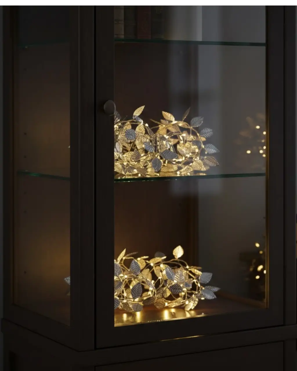 Gümüş Yaprak Tasarımlı Led Işık Pilli Ev Ve Vitrin Dekoru