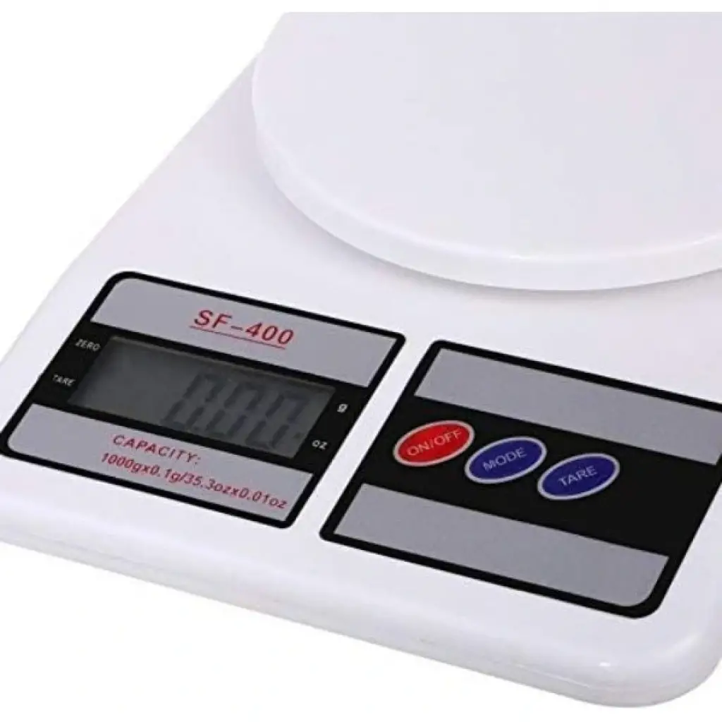 HASSAS MUTFAK TERAZİSİÜrün Özellikleri100.00 gram /22 kapasite1 gram hassasiyetDüşük pil kullanımıAşırı yük göstergesiFonksiyonu saymaDara fonksiyonu60 saniye kullanılmadığı takdirde otomatik kapanma özelliğiTartı modları: G/oz/ıbÖlçek boyutu: 225x 160x 43 mmPlatform boyutu: 151x 151Paket İçeriği1 adet hassas mutfak terazisi2 adet pil