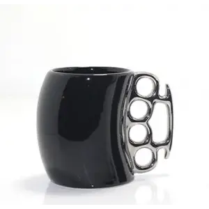 Porselen Muşta Tasarımlı Kupa Bardak Siyah