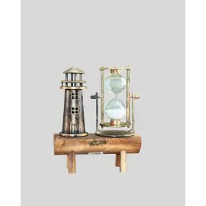 Ahşap Kum Saati ve Deniz Feneri Figürü Bir Arada – Ev & Ofis Dekorasyonu