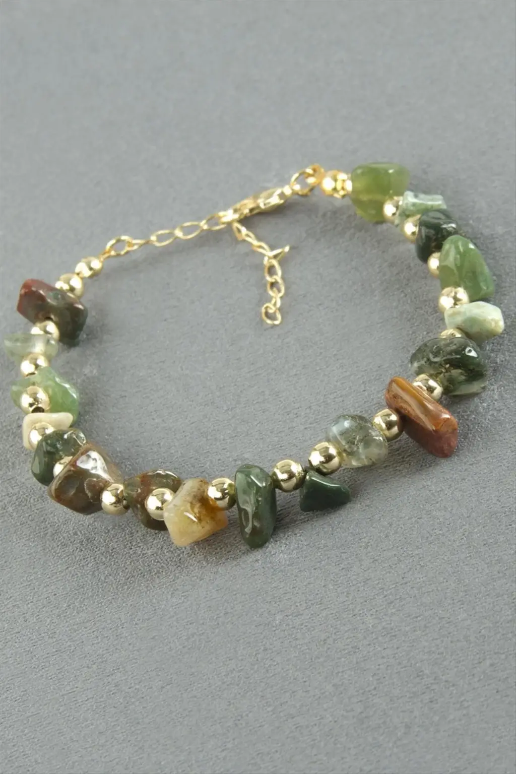 Bileklik; Ürün malzemesi kırık doğaltaş ve metaldir. Ürün boyu 19 cmdir. Kartlıdır. 1 sınıf kaliteli malzemeden üretilmiştir.