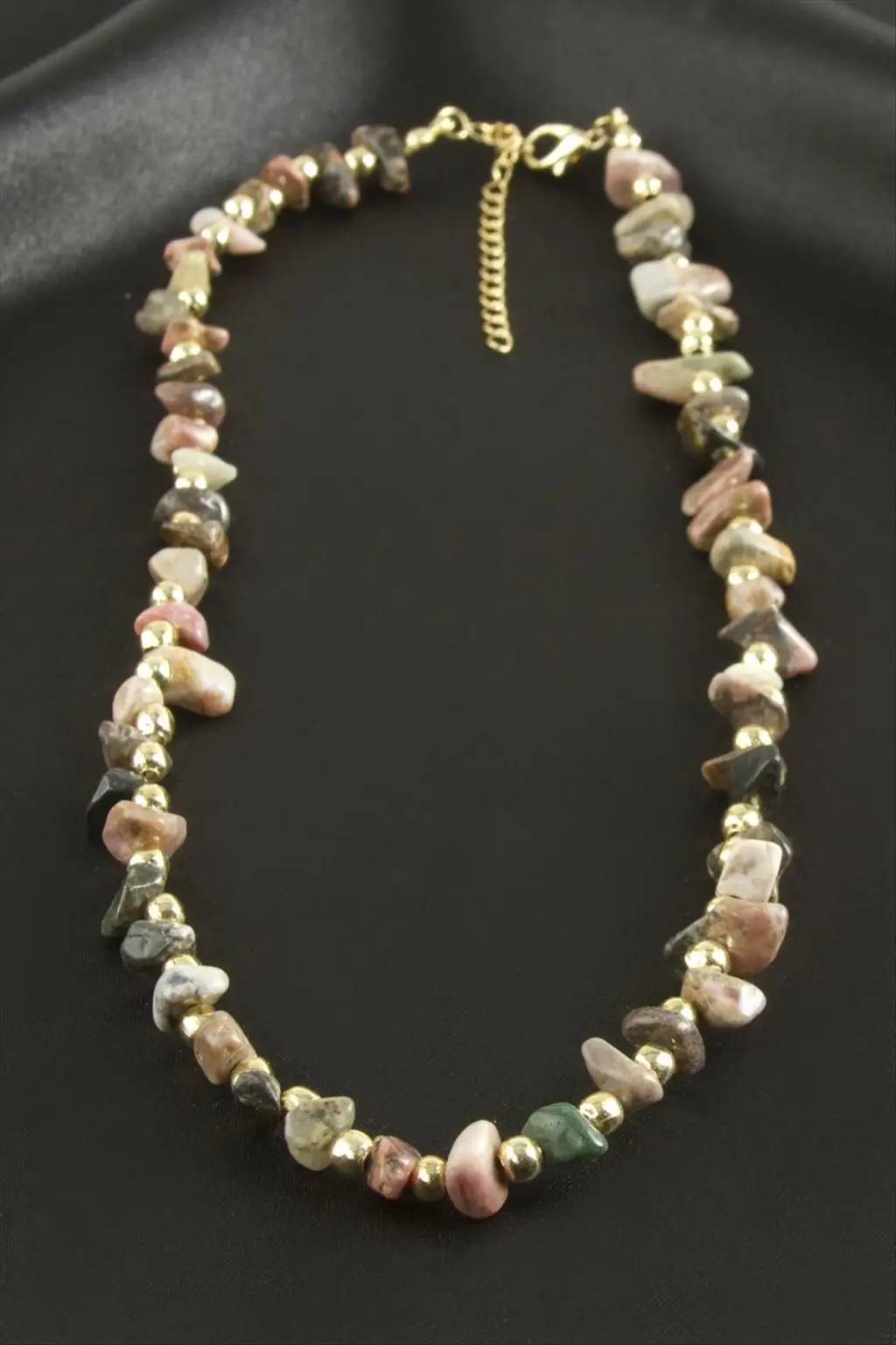 Kolye; Ürün malzemesi kırık doğaltaş ve metaldir. Ürün boyu 45 cmdir. Kartlıdır. 1 sınıf kaliteli malzemeden üretilmiştir.