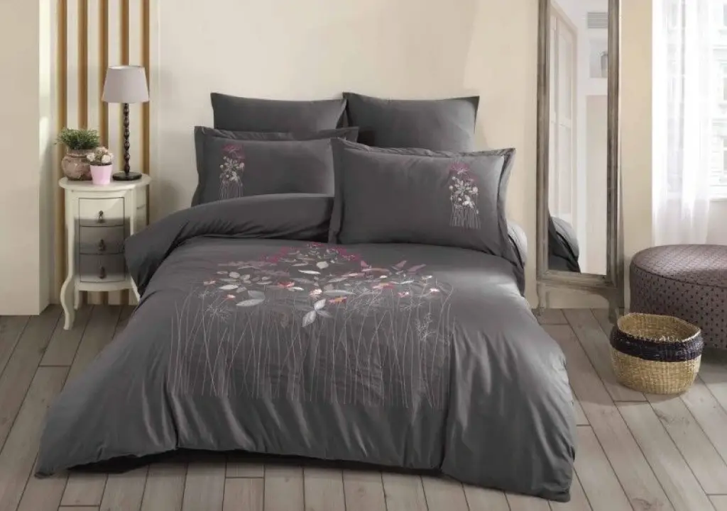 Hobby Çift Kişilik Poplin Premium Nakışlı Nevresim Emilia Gri