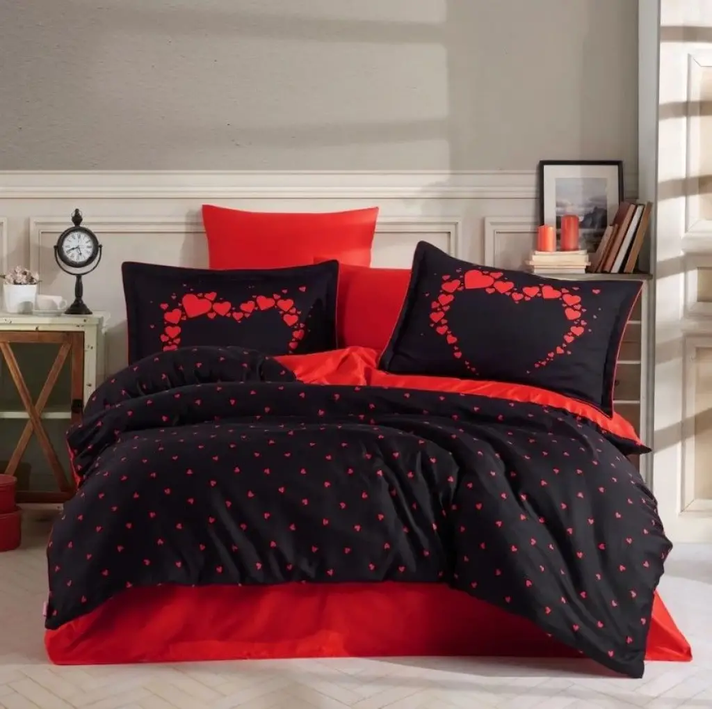 Hobby Çift Kişilik Saten Nevresim Amore Siyah