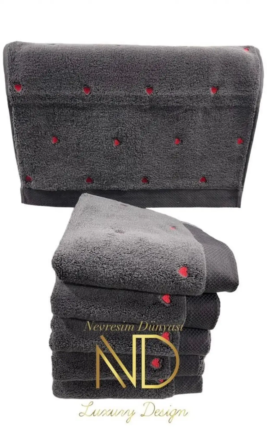 Hobby Lubow Love Koyu Gri Kırmızı Nakışlı 70x140 6'lı Havlu Seti
