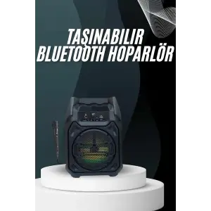 Bluetooth Hoparlör USB AUX SD Kart Kaoroke Mikrofon Uzun Pil Ömrü