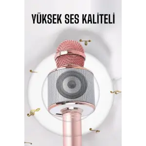 Kablosuz Bluetooth Karaoke Mikrofon USB ve AUX Girişli, Yüksek Ses Kalitesi