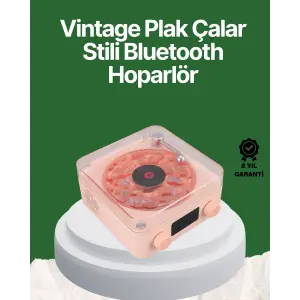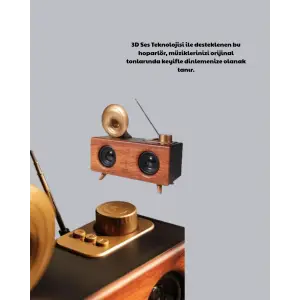 Retro Gramofon Tasarımlı Bluetooth Hoparlör – 3D Stereo Ses, 1800 mAh Batarya