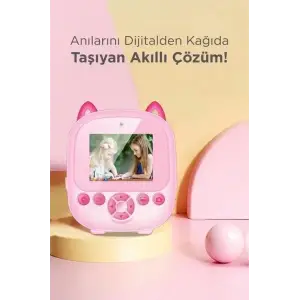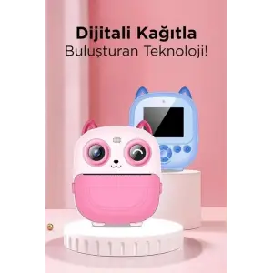 Dijital Video Fotoğraf App Destekli Çocuk Kamerası Termal Resim Kağıt Baskılı Yazıcı Pembe