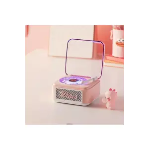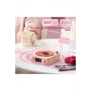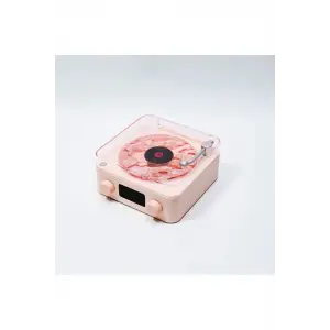 Nostalji Mini Plak Görünümlü Radyolu Bluetooth Hoparlör 3d Ses Dalgası Retro Müzik Plak Pembe