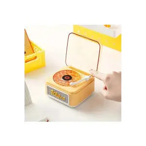 Nostalji Mini Plak Görünümlü Radyolu Bluetooth Hoparlör 3d Ses Dalgası Retro Müzik Plak Sarı