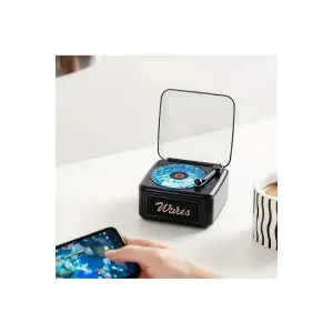 Nostalji Mini Plak Görünümlü Radyolu Bluetooth Hoparlör 3d Ses Dalgası Retro Müzik Plak Siyah