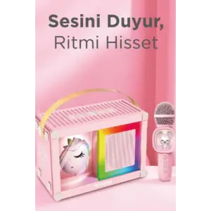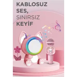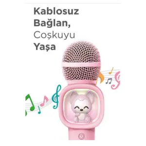 Taşınabilir Rgb Işılı Sevimli Figürlü Mikrofonlu Karaoke Bluetooth Hoparlör Pembe