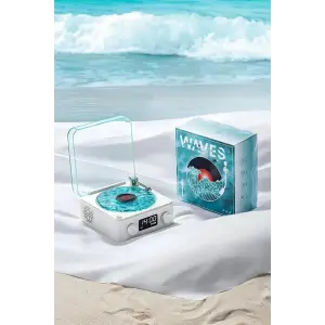 Waves Nostalji Plak Görünümlü Bluetooth Hoparlör 3d Ses Dalgası Retro Müzik Plak Mavi