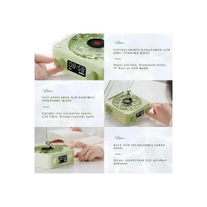 Waves Nostalji Plak Görünümlü Bluetooth Hoparlör 3d Ses Dalgası Retro Müzik Plak Yeşil