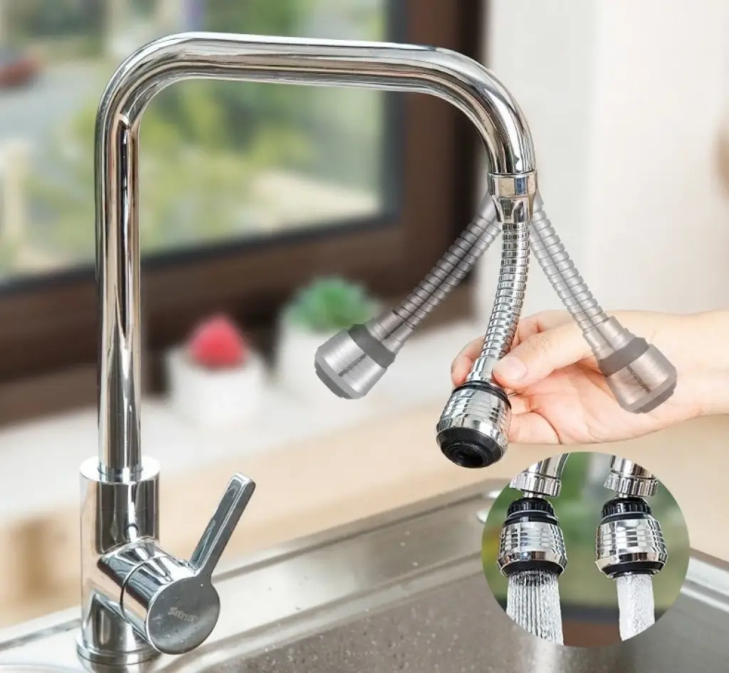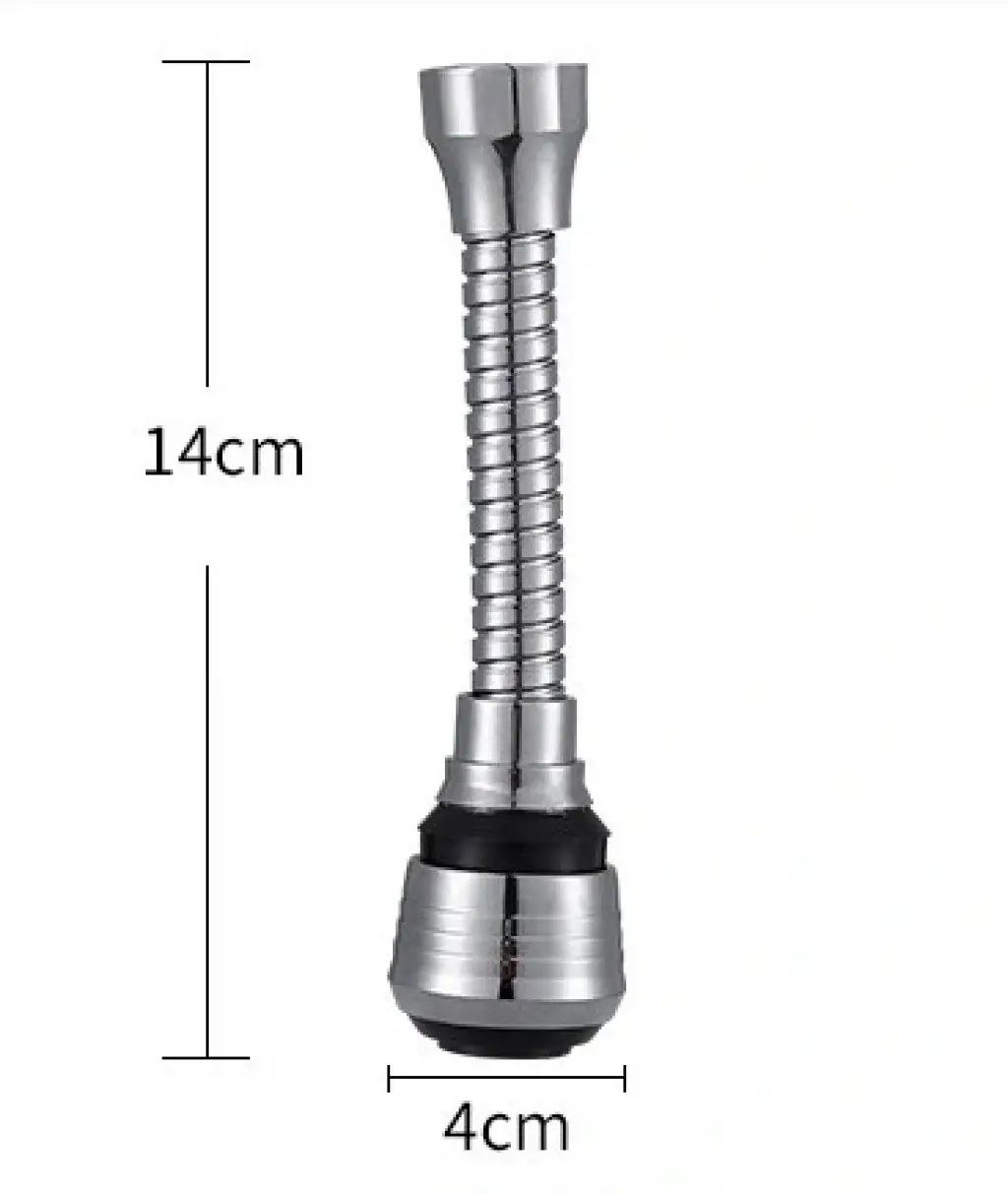 360° DÖNEBİLEN ESNEK MUSLUK BAŞLIĞI UZATMA APARATIÜrün ÖzellikleriMutfak lavabonuzdaki temizlik işlemlerini kolaylaştırmak için tasarlanmış bu pratik musluk başlığı uzatma atı, esnek ve 360° dönebilen yapısıyla suyu istediğiniz yöne kolayca yönlendirmenize olanak tanır. Lavabonun her köşesine rahatça ulaşarak özellikle büyük ve derin evyeler veya tek gözlü lavabolarda köşeleri temizlemek için idealdir. Dayanıklı spiral tasarımı ve su tasarrufu sağlayan perlatör (bazı modellerde) ile hem kullanışlı hem de ekonomik bir çözümdür. Standart musluk dişlerine uyumlu yapısı sayesinde montajı kolayca yapılabilir.Paket İçeriği1 adet Esnek Musluk Başlığı Uzatma AtıContalar ve montaj parçaları (dişi-erkek atları)