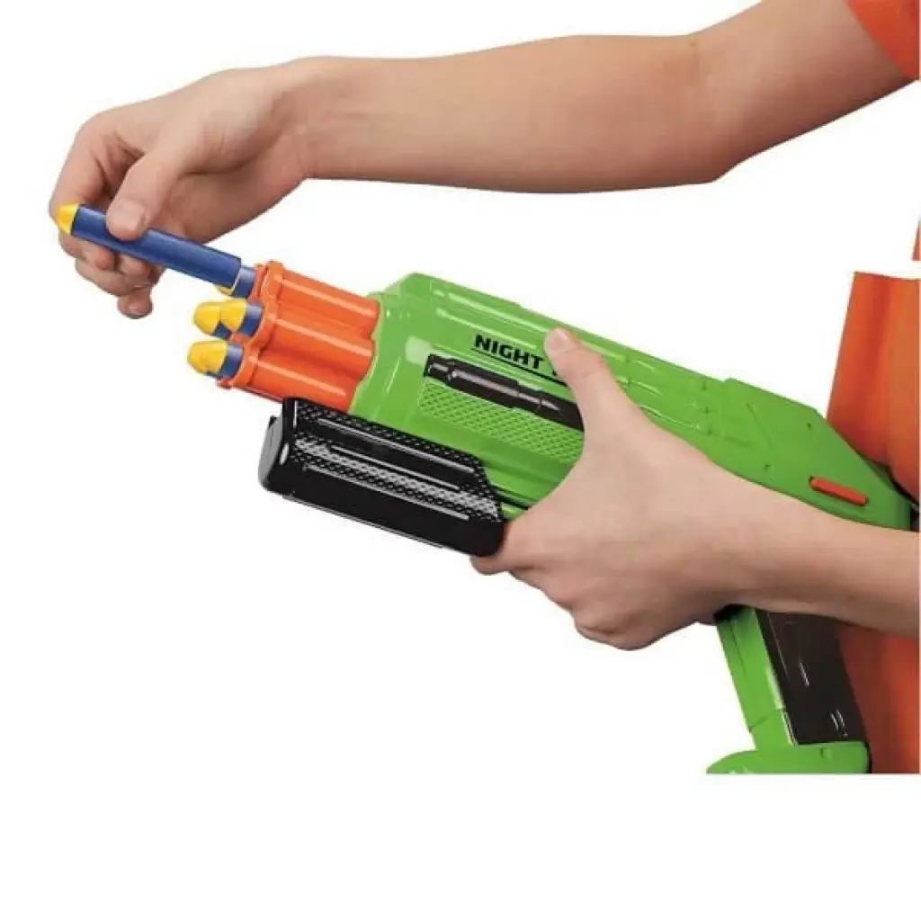 29 cm. uzunluğundaki silahın; unuz menzil, güçlü atış ve kaliteli tasarım özellikleri bulunmaktadır. Dartları yerleştirin kolu ittirin ve oyuna başlayın! Silahın üzerinde bulunan ışıklı dürbün ile çocuklar gece de silahlarını kullanabilecekler.