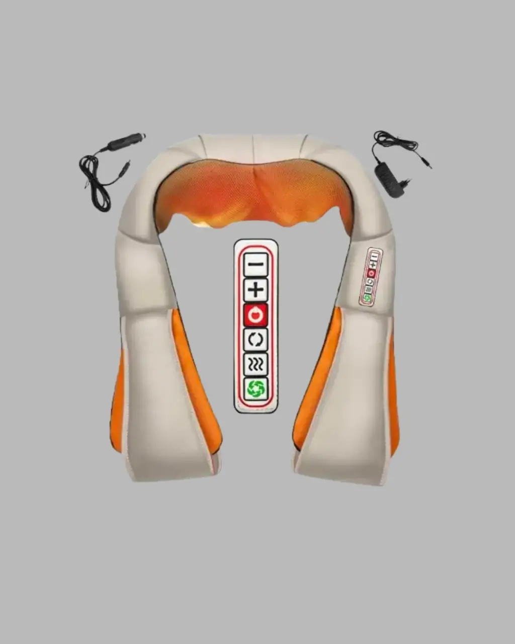 Gelişmiş teknoloji kullanılarak tasarlanan bu masaj cihazı, yoğurma hareketi ve ısıyı otomatik olarak yönlendirerek kaslarınıza ayarlanabilir bir terapi uygular. Boyun, omuz, kulunç ve sırt bölgelerine rahatlıkla uygulanabilir. Masaj sırasında yayılan sıcaklık, hem kasların gevşemesini sağlar hem de lenf ve kan dolaşımını destekler; böylelikle dokular arası besin maddesi iletimi ve atıkların uzaklaştırılması hızlanır. Fizyoterapi etkisine yakın bir masaj deneyimi yaşatır. Masaj başlıklarının üç boyutlu üniform yapısı, müdahale gerektirmeyen bir cihaz sunar. Kullanımı rahat ve güvenli olan cihaz aşırı ısınma koruma sistemiyle tasarlanmıştır; belli bir sıcaklığa eriştiğinde devreye girerek cihazı koruma moduna alır. PU deri ve nefes alan kumaş kaplamasıyla hem hijyenik hem uzun ömürlüdür. Boyun şalı formunda yapılandığı için cihaz vücudunuzu sararak daha etkili bir masaj deneyimi sağlar.