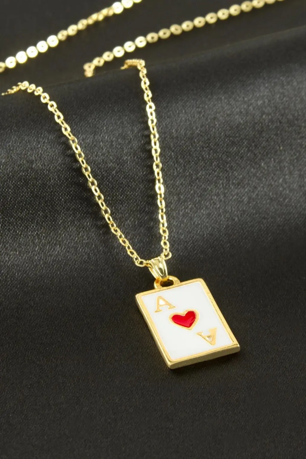 Kolye; Ürün malzemesi metal ve mine boyamadır. Ürün zincir boyu 45 cm ve ucundaki polyester aparat boyu 2 cmdir. Kartlı ve paketiyle beraber gönderilecektir.