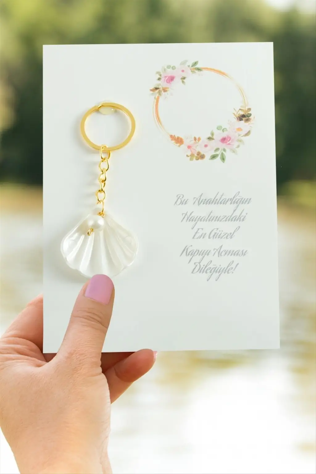 Anahtarlık; Ürün malzemesi plastik ve metaldir. Ürün inci boyu 4 cmdir. Toplam uzunluğu 10 cmdir. Kartıyla beraber gönderilecektir.