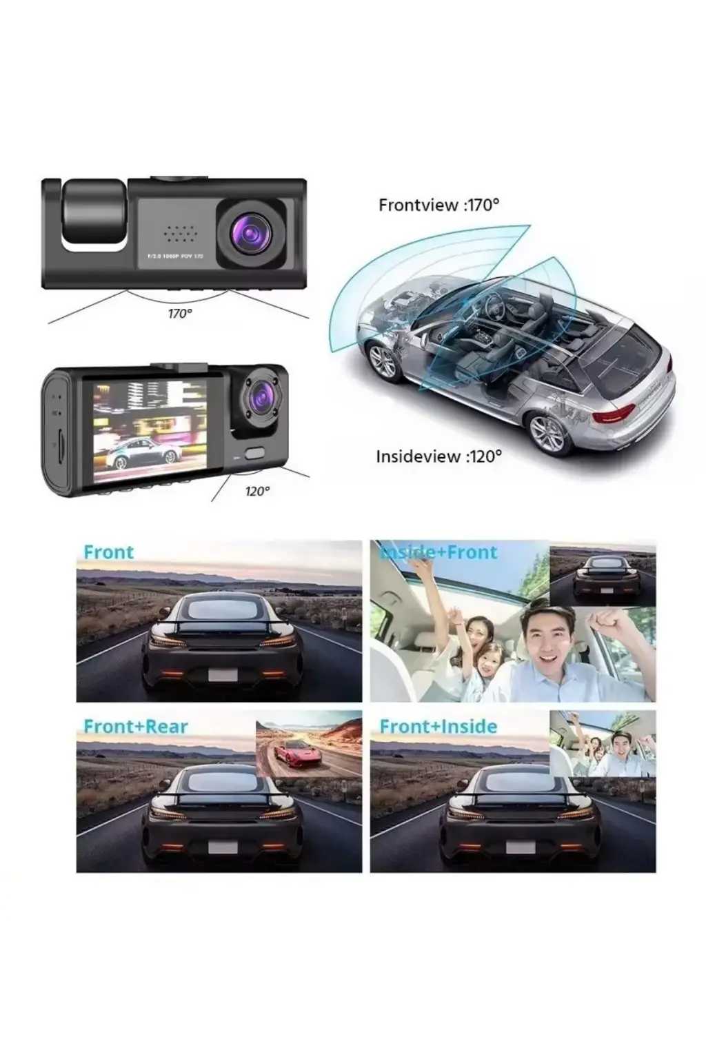 Üç Kameralı Ön Iç Arka Araç Içi Kamera Wifi Viidure App Mpıa CC38 64GB