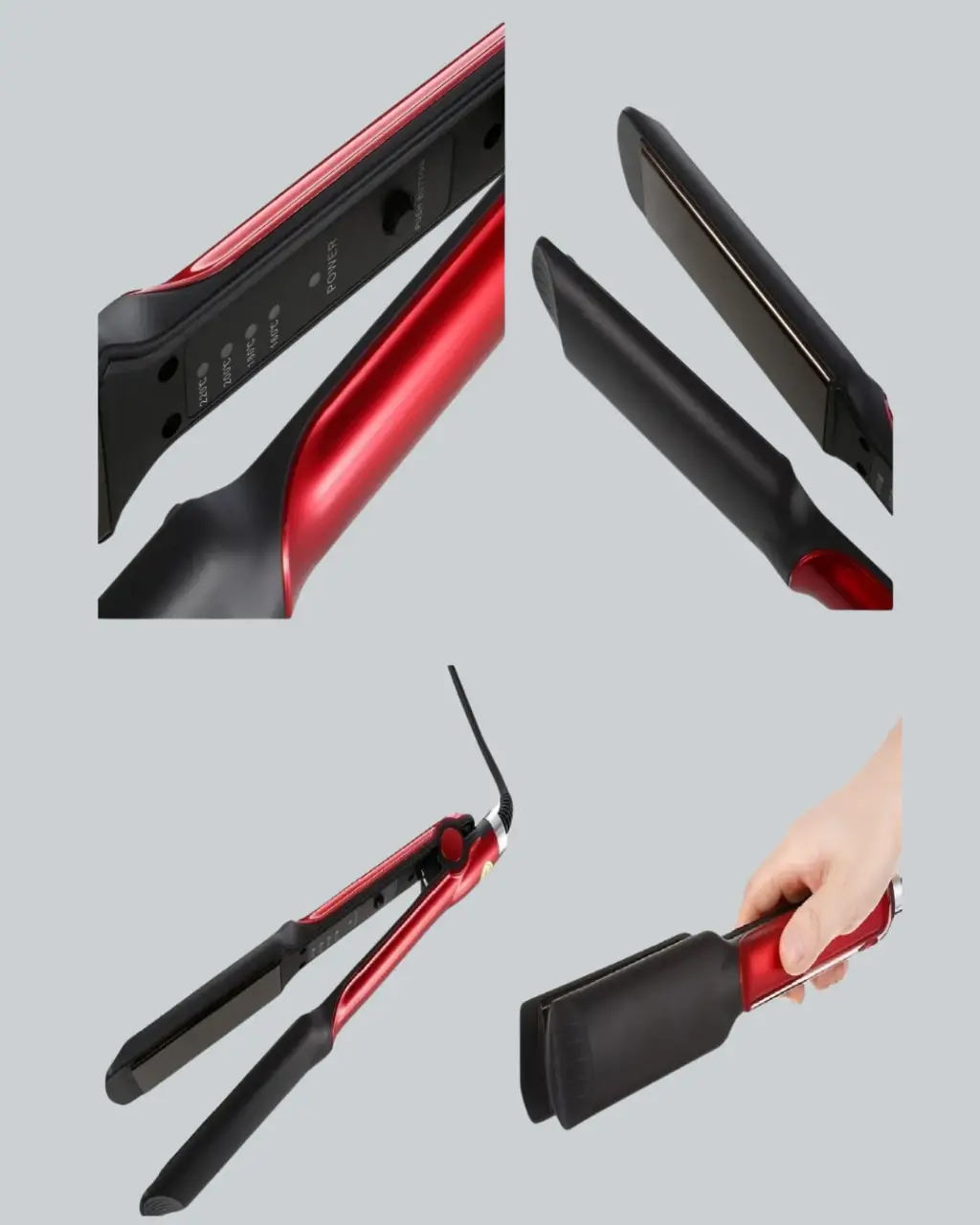 Günlük hayatta zamandan tasarruf ederek saçlarını kusursuz ve sağlıklı bir şekilde şekillendirmek isteyen herkes için özel olarak tasarlanan bu profesyonel saç düzleştirici, şıklığı ve performansı bir araya getiriyor. Hem evde kullanıma hem de seyahat esnasında taşımaya uygun kompakt tasarımı, hızlı ısınma özelliği, saç yapısına zarar vermeyen teknolojisi ve çok yönlü kullanım imkanıyla öne çıkan bu düzleştirici, kullanıcıların farklı ihtiyaçlarını karşılamak için donatıldı.Ayarlanabilir Isı Seviyesi – Her Saç Tipi İçin UygunCihazın 160°C, 180°C, 200°C ve 220°C olmak üzere dört farklı ısı ayarı bulunur. Bu özellik sayesinde kullanıcılar saç yapısına en uygun sıcaklık seviyesini seçebilir. İnce telli saçlar düşük ısıda kolayca şekillenirken, kalın ve kabarık saçlar daha yüksek sıcaklıkla etkili şekilde düzleştirilebilir. Isı ayarı, saçların zarar görmesini önleyerek sağlıklı şekillendirme sağlar.Titanyum Plaka Teknolojisi ile Hızlı IsınmaDüzleştirici, titanyum malzemeden üretilmiş yüksek ısı iletkenliğine sahip plakalarla donatılmıştır. Bu plakalar sayesinde cihaz yalnızca 2 dakika içinde kullanıma hazır hale gelir. Titanyum yüzey, ısıyı eşit şekilde dağıtarak saçın her telinin dengeli bir biçimde şekillenmesini sağlar. Aynı zamanda saçta yanma, kırılma ve kuruma gibi istenmeyen etkileri minimuma indirir.Yuvarlatılmış Kenarlarla Dalga ve Hacim VermeYalnızca düzleştirme yapmakla kalmayan bu cihaz, yuvarlatılmış kenar tasarımı sayesinde saçlara dalga verme veya uçlara hacim kazandırma işlemlerinde de rahatlıkla kullanılabilir. Böylece kullanıcılar tek bir cihazla birçok saç modeline ulaşabilir. Gündelik kullanımdan özel davetlere kadar her ortamda stilinizi hızlıca oluşturabilirsiniz.İyon Teknolojisi ile Parlak ve Elektriksiz SaçlarGelişmiş iyon teknolojisi, düzleştirici çalışırken saç telinin çevresine negatif iyonlar yayarak elektriklenme ve kabarma sorunlarını ortadan kaldırır. Saçlarınız şekil aldıktan sonra doğal bir parlaklığa ve pürüzsüz bir görünüme kavuşur. Bu teknoloji ayrıca saçın nem dengesini korur, daha yumuşak ve bakımlı bir doku oluşturur.Ergonomik Tasarım ve Taşınabilirlikİdeal boyutu ve hafif yapısıyla çanta veya valizde kolayca taşınabilen bu saç düzleştirici, seyahatlerde de vazgeçilmez bir yardımcıdır. Isıya dayanıklı dış yüzeyi sayesinde kullanım sırasında elinizi yakmaz. 360° dönebilen kablo tasarımı, cihazı istediğiniz yönde rahatça hareket ettirmenize olanak tanır. Bu özellik hem sağ hem sol elle kullanımda kolaylık sunar.Dayanıklı Malzeme ve Güvenli KullanımYüksek kaliteli ve ısıya dayanıklı plastikten üretilmiş gövdesi, uzun ömürlü kullanım sunar. Aynı zamanda ısıya dayanıklı kablo yapısı, kullanım sırasında kabloda oluşabilecek deformasyonları engeller. Cihazın dış yüzeyi sıcaklığı dışa yansıtmaz, bu da ekstra konfor ve güvenlik sağlar.Şık Görünüm – Estetik DetaylarModern tasarımı ve dikkat çekici pembe rengiyle bu düzleştirici yalnızca işlevsel değil, aynı zamanda estetik bir kullanım sunar. Banyoda, makyaj masasında veya seyahatte, göz alıcı rengiyle şıklığınıza zarif bir dokunuş katar.