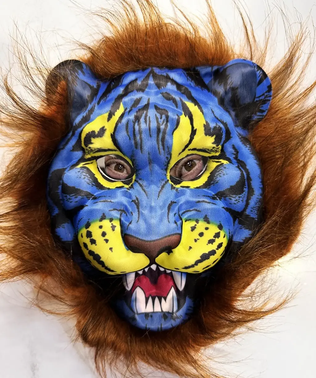 Eva malzemesi sayesinde bu maske oldukça dayanıklıdır. Uzun yıllar boyunca kullanabilirsiniz. Kahverengi Yeleli Saçlı Mavi Yüzlü Kurt Kaplan Maskesi Mega Peluş Maskesi tasarımı ise maskeye sevimli ve eğlenceli bir görünüm kazandırır.