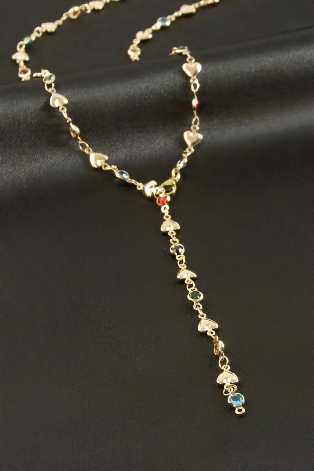 Kalp Karışık Renkli Zirkon Taşlı Çelik Y Kolye