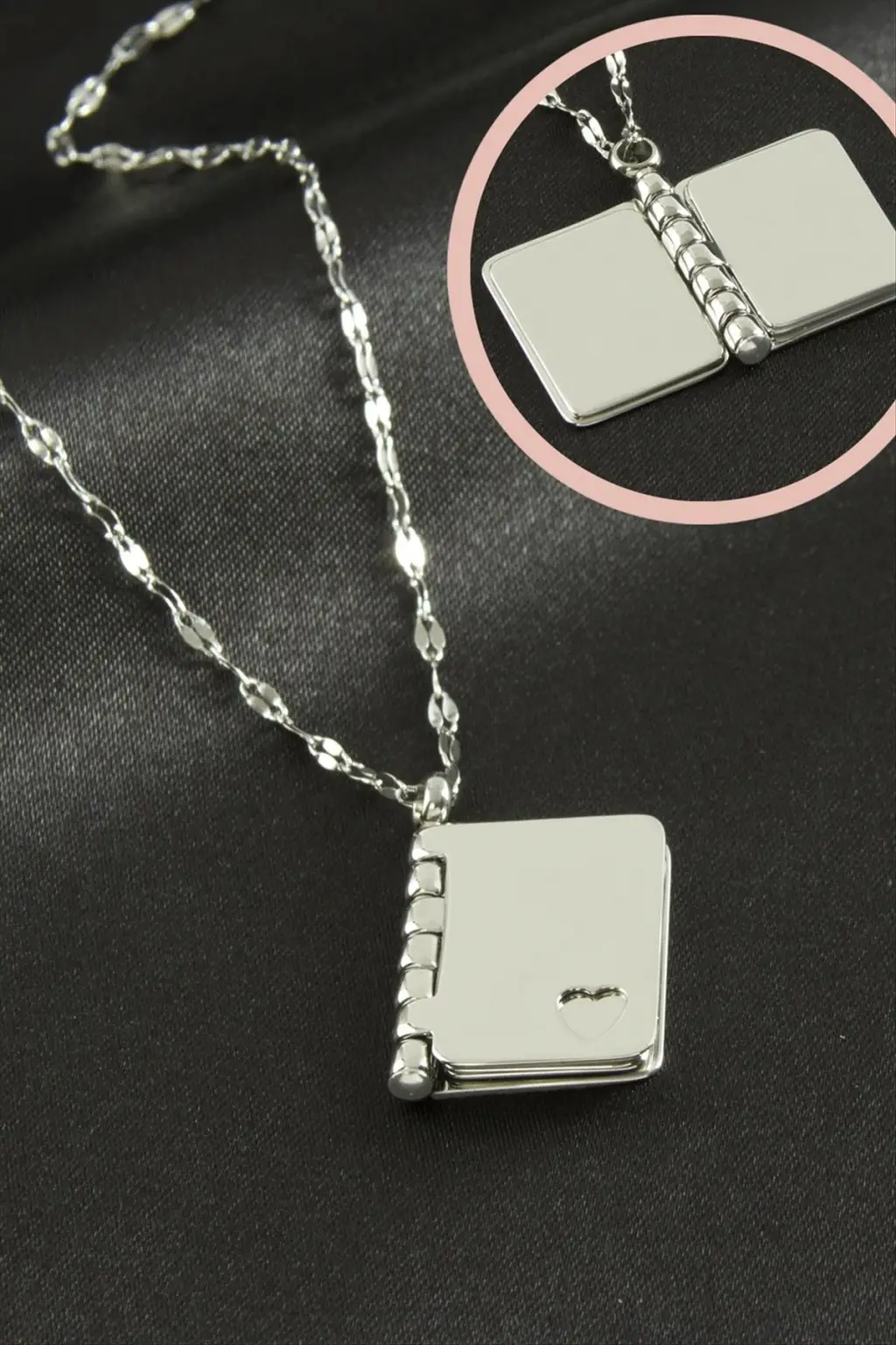 Kolye; Ürün malzemesi çeliktir. Zincir uzunluğu 50 cm ve ucundaki aparat boyu 1,5*2 cmdir. 5 adet boş aparat sayfa vardır. Kartlıdır. Ürün içersi boş ve yazısız olarak gönderilecektir.