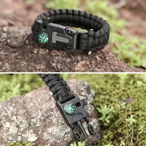 5'i 1 Arada Çok Fonksiyonlu Hayatta Kalma Bilekliği Pusula, Düdük, Çakmak Taşı ve Şemsiye İpi Bileklik