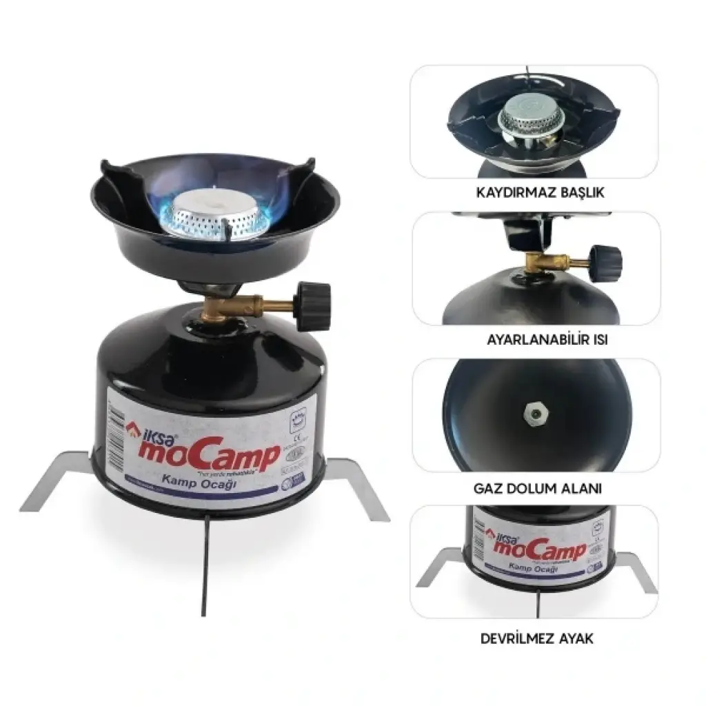 KAMP OCAĞI SETİÜrün ÖzellikleriKamp ocağı seti, taşınabilir ve kompakt yapısıyla outdoor aktivitelerinizde mükemmel bir yardımcıdır. 12 cm çapındaki pişirme alanı, tencere ve tava kullanımı için uygundur. Toplam ağırlığı yaklaşık 400 gram olan bu set, hafif ve pratik bir kullanım sunar. Universal çakmak gazı tüpü ile çalışır ve setin içinde yer alır. Ayarlanabilir alev gücü sayesinde düşükten yükseğe kontrollü pişirme yapabilirsiniz. Dayanıklı metal gövde ve plastik gaz vanası ile uzun ömürlüdür. Piknik, kamp, doğa yürüyüşleri ve acil durumlar için idealdir. Yanma süresi, yakıt kapasitesine bağlı olarak uzun süreli kullanım sağlar.Paket İçeriği1 Adet Kamp Ocağı1 Adet Universal Çakmak Gazı Tüpü1 Adet Metal Üç Ayaklı Denge Atı
