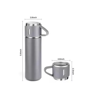Termos Seti Paslanmaz Çelik 3 Bardaklı Vakumlu Termos Set 500 Ml 12 Saate Kadar Isı Koruma