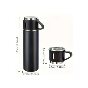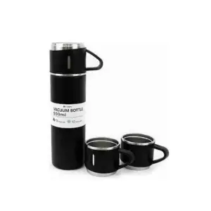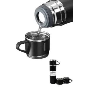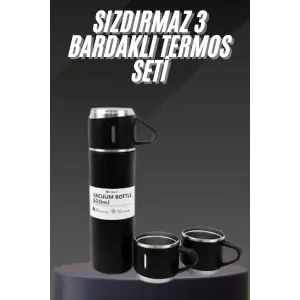 Termos Paslanmaz Çelik Termos Siyah Renk 3 Bardaklı Termos Seti